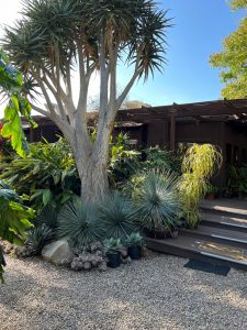 Yucca rostrata ‘Rancho Blue’ is an exclusive Rancho Tissue selection chosen for its vivid powder-blue foliage. With a compact habit in youth and a statuesque silhouette as it matures, it develops into a single-trunked specimen reaching 12 to 15 feet tall, topped by a dense, symmetrical crown of slightly stiff blue leaves with light yellow margins. It’s cold-hardy to 10 °F once established, provided soil is well-drained. ‘Rancho Blue’ is well-suited for architectural planting, modern landscapes and xeriscape design.