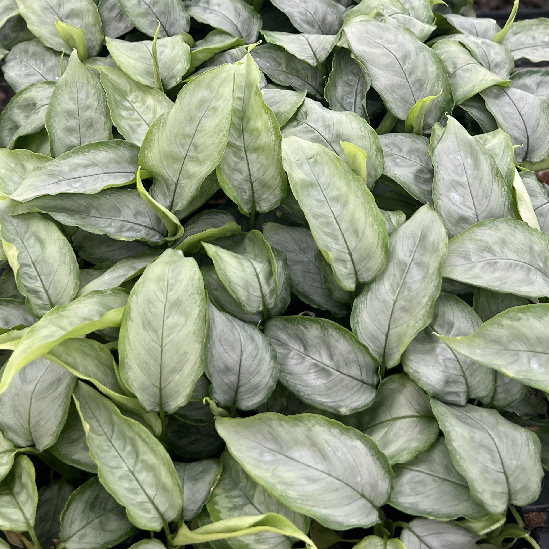 Schismatoglottis ‘Borneo Silver’ is a rare and striking tropical aroid prized for its silvery-blue veined leaves that contrast beautifully against dark green margins. The leaves are typically ovate, slightly undulated, and about 4–8 inches long, arising from short rhizomes or creeping stems.